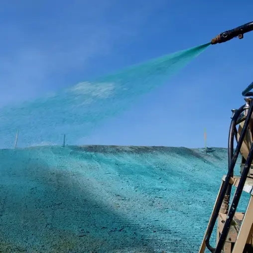 - Hydroseeding – Once a site is ready for revegetation, our hydroseeding services establish grass and ground cover quickly and effectively. The process applies seed, fertilizer, hydro mulch, water, and soil amendments in a single application, making it ideal for large or hard-to-reach areas. Soil stabilizers can also be incorporated, depending on site conditions.